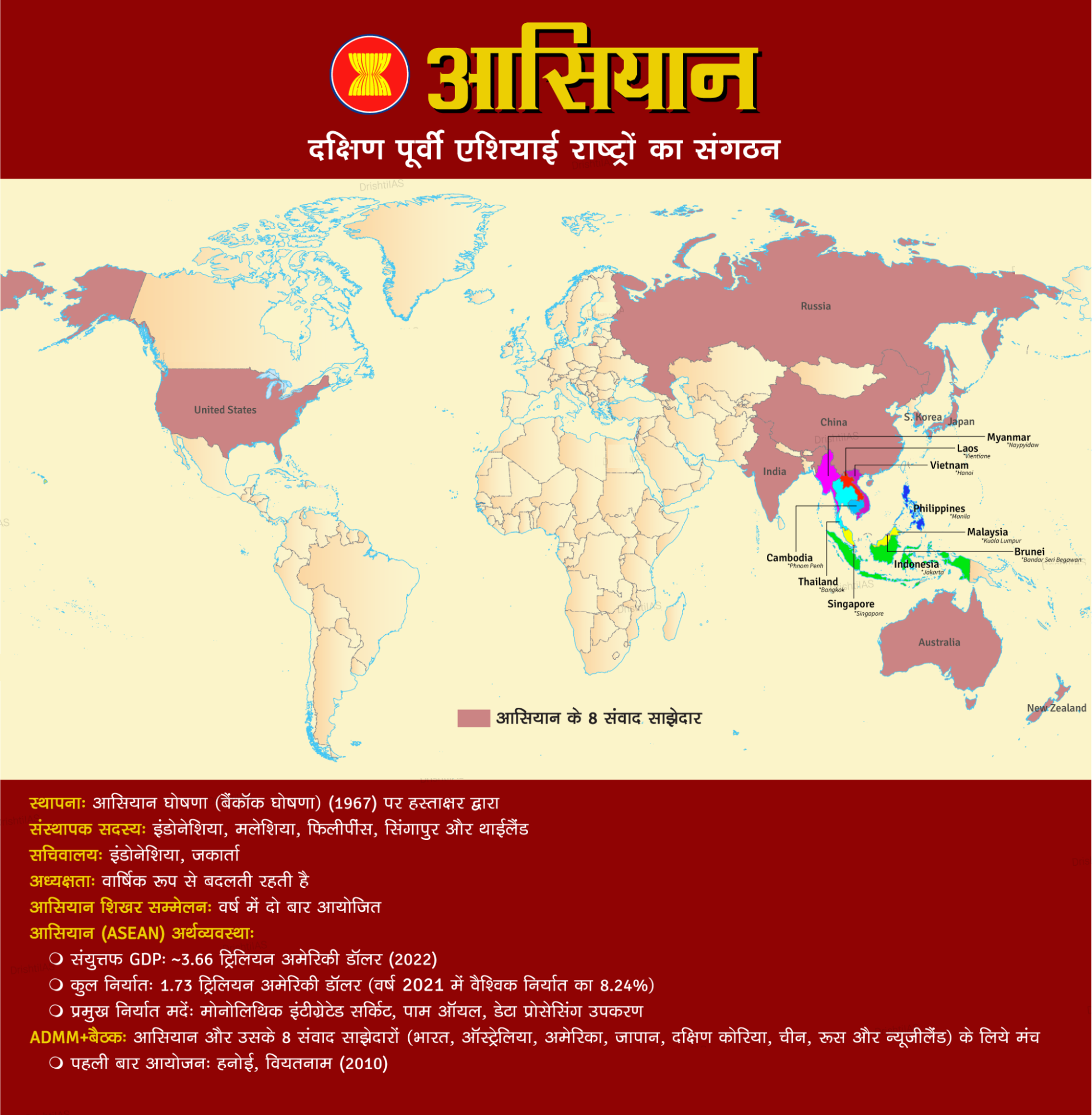 - इससे पहले आसियान में शामिल होने वाला अंतिम देश 1999 में कंबोडिया था।