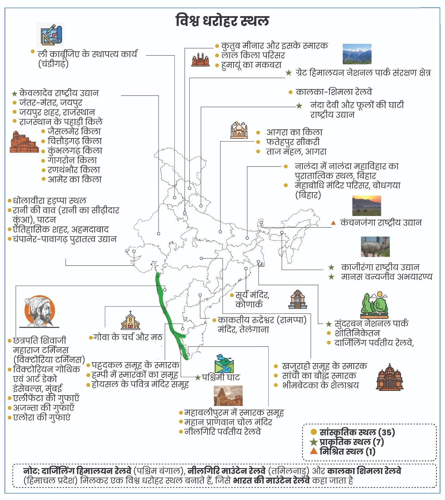 यूनेस्को विश्व धरोहर केंद्र ने 2025 में भारत के लिए संभावित सूची में छह स्थलों/ स्मारकों को शामिल करने का निर्णय लिया।